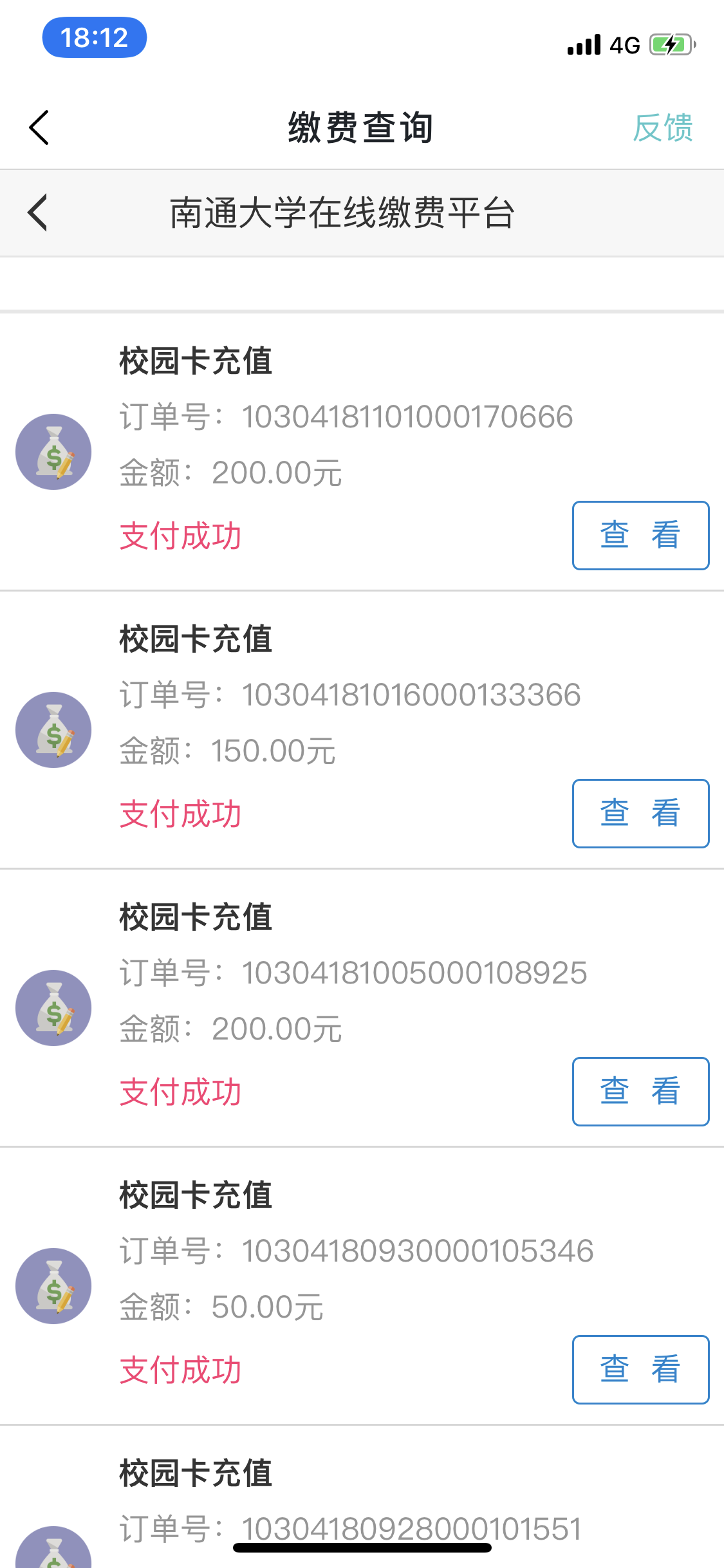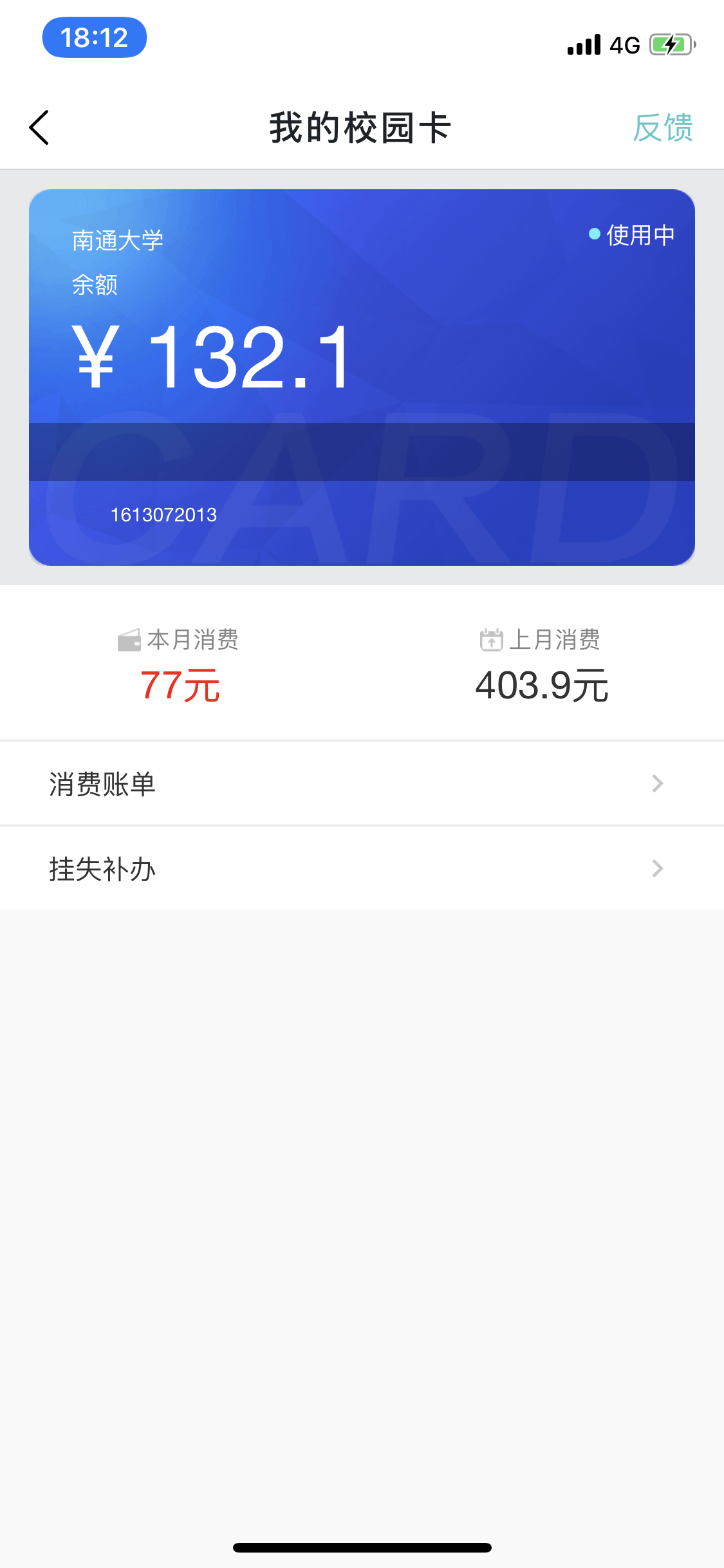 服务中的我的校园卡界面,可以向用户实时显示校园卡余额及校园卡流水,对用户进行实时反馈。
