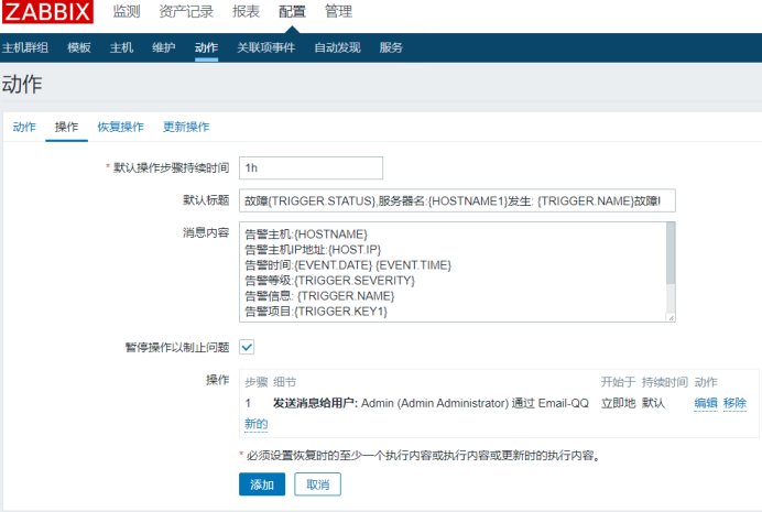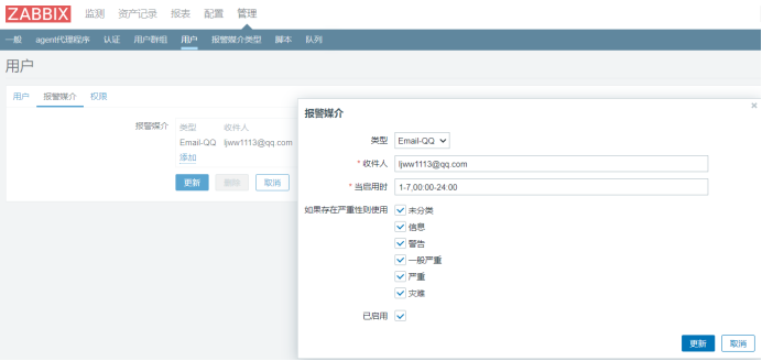 配置通过Email-QQ发送告警信息给用户ADMIN