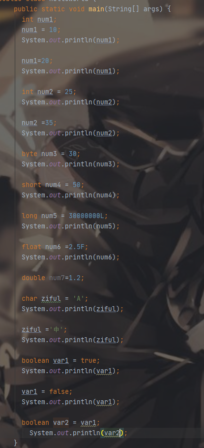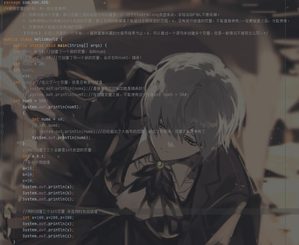 数据类型 变量名称 = 数据值 穿件一个变量的同时 立刻放入制定的数据值