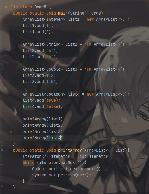 这时候我们不知道Arraylist集合使用什么数据类型,可以泛型的通配符?来接收数据类型注意:泛型没有继承概念的
