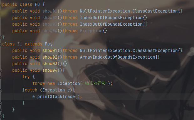 父类异常时什么样,子类异常就什么样父类方法没有抛出异常,子类重写父类该方法时也不可抛出异常。