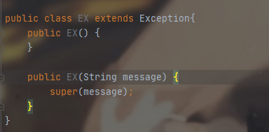 查看源码发现,所有的异常类都会有一个带异常信息的构造方法,方法内部会调用父类带异常信息的构造方法,让父类来处理这个异常信息