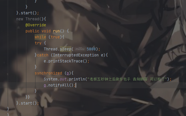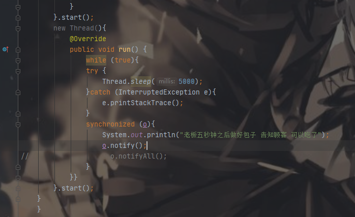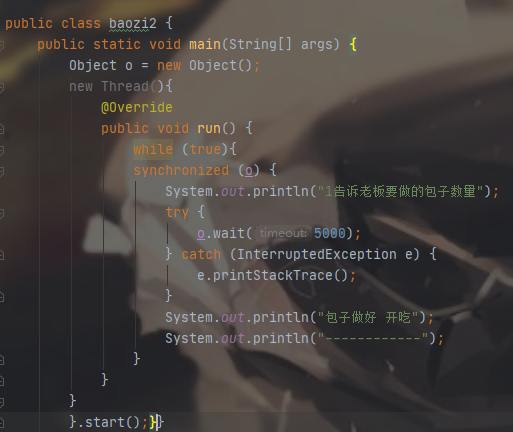 2.使用wait(Long m)方法, wait方法如果在毫秒值结束之后,还没有被notify唤醒,就会自动醒来,线程睡醒进入到Runnable/BLocked状态