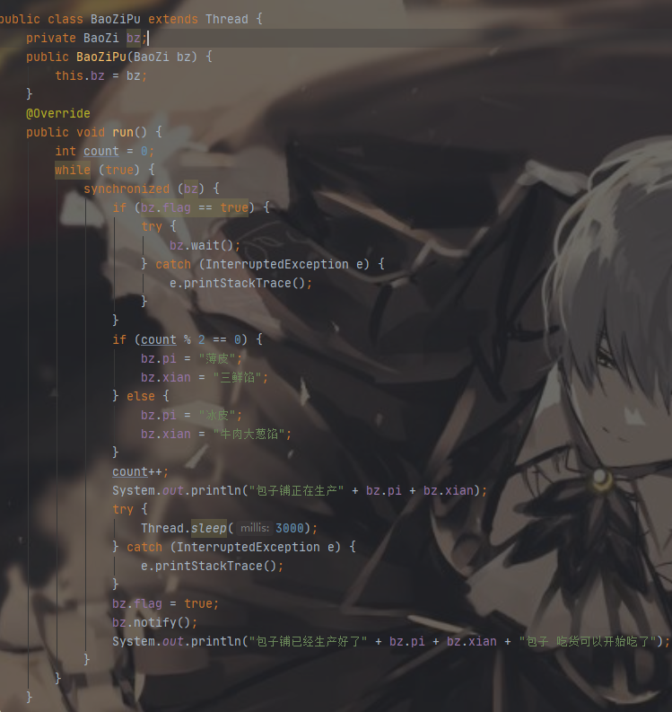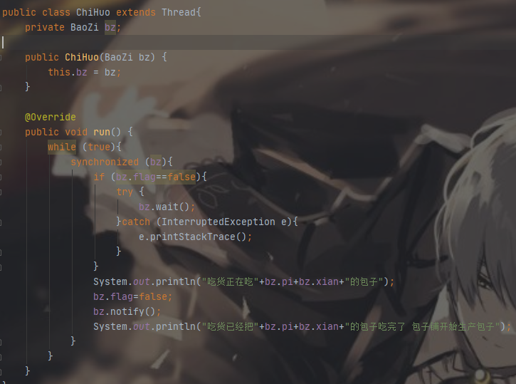 消费者(吃货)类:是一个线程类,可以继承Thread设置线程任务(run) :吃包子