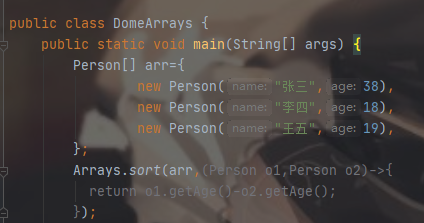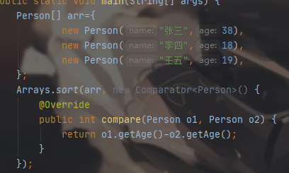 对数组中的Person对象使用Arrays的sort方法通过年龄进行升序排序