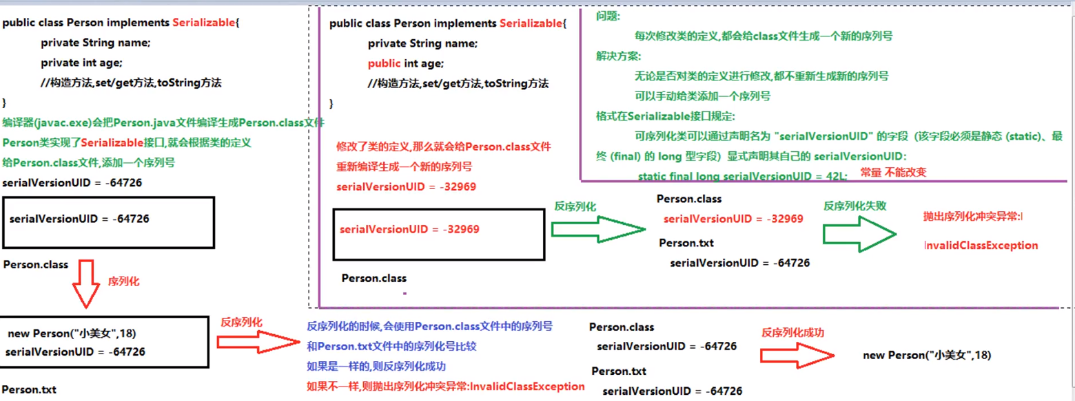 另外,当JVM反序列化对象时,能找到class文件,但是class文件在序列化对象之后发生了修改,那么反序列化操作也会失败,抛出一个(InvalidclassException异常。发生这个异常的原因如下︰