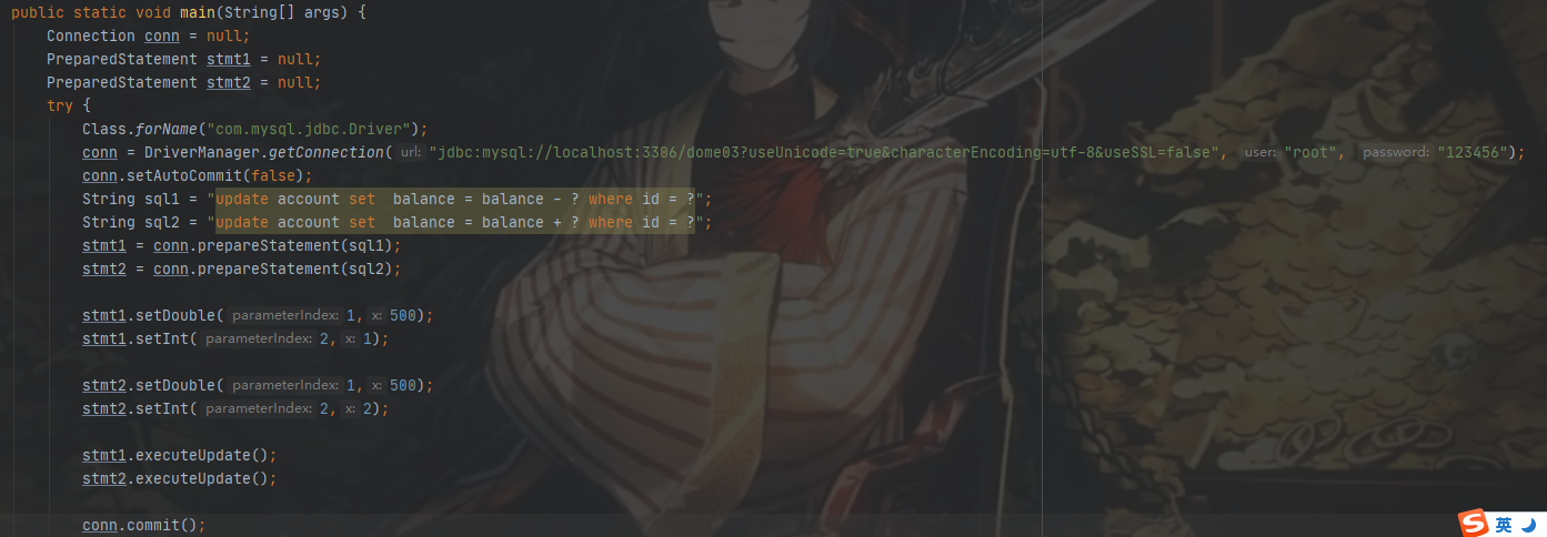 *开启事务:setAutoCommit(boolean autoCommit):调用该方法设置参数为false,即开启事务