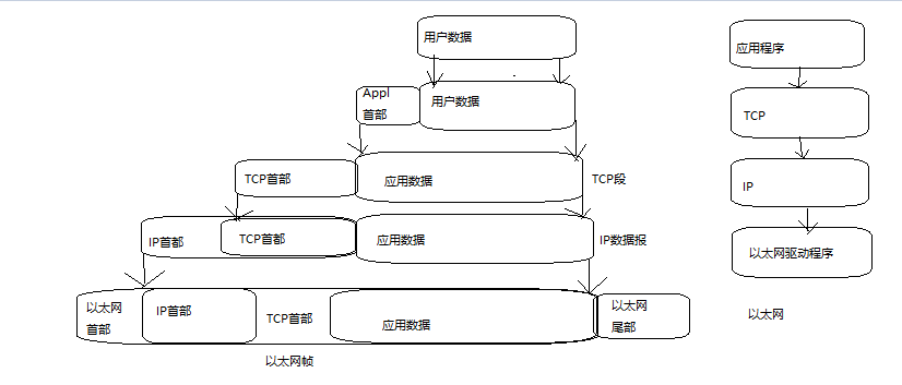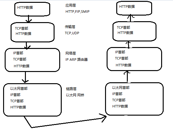 发送端发送数据时 数据回从上层传输到下层且每经过一层都会被打上该层的