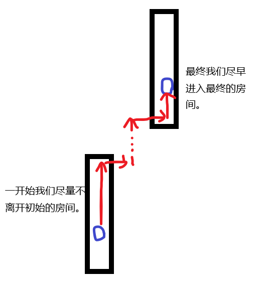 但这样有一个问题——我们最终乘坐的电梯和最优解是同一个,也就意味着最后我们没必要换乘楼房,那么此时就不能加上\(2\);同理,一开始我们乘坐的电梯可能和最优解相同。
