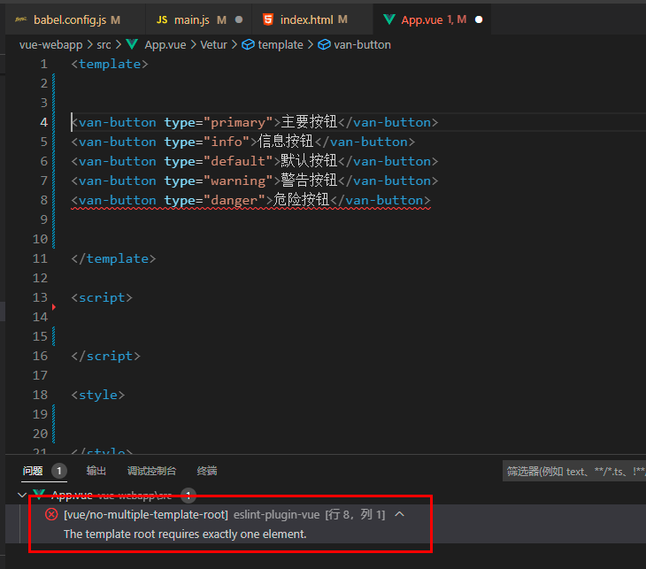 原因:这是因为vue的模版中只有能一个根节点 template,所以在 template 中插入第二个元素就会报错