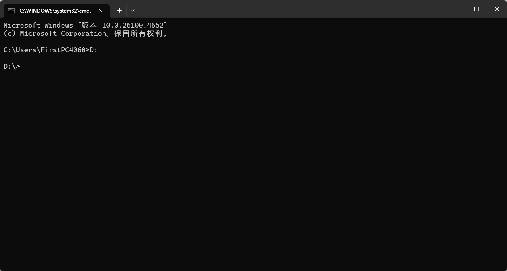 2.输入Vs Studio所在磁盘,例如,在D盘就输入"D:",会切换到D盘