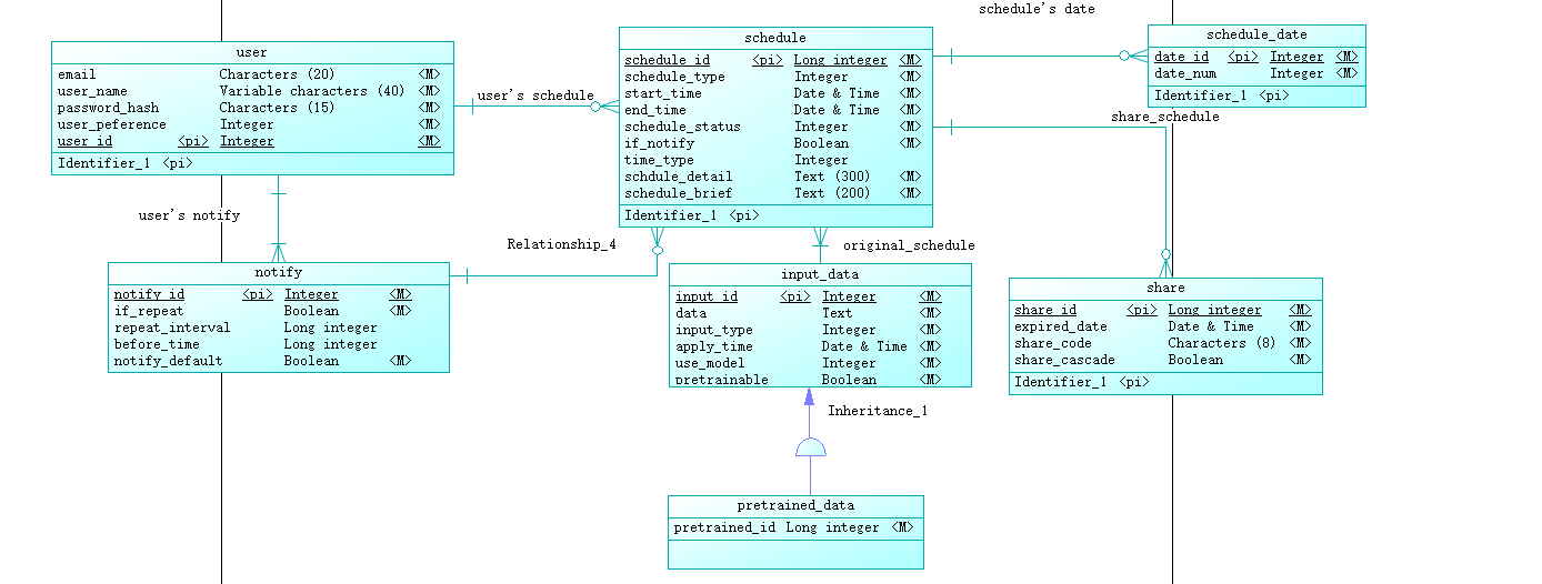 对于这样一个系统,必然存在用户和日程,所以数据库至少包含用户和日程实体;