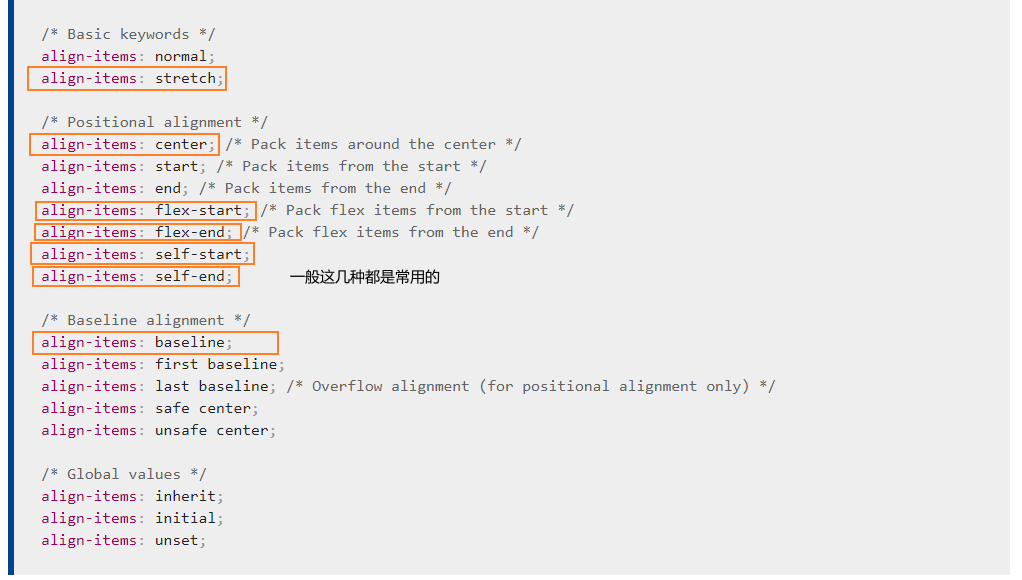 align-items的常用属性:
