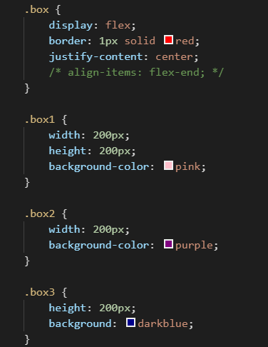 - box2 展现了出来,因为我给了宽,但是没有高它仍然显示出来了。这是因为如果弹性项没有设置高度或设为auto,那么它的父元素的align-items的属性为默认的stretch,也就是会沿着侧轴拉伸到至父元素的高度或者宽度,
