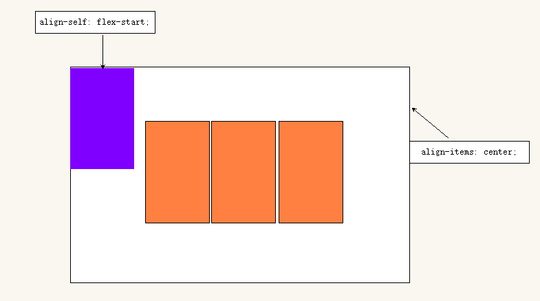 其他弹性项设置为center,它自己可以被单独设置为flex-start,就是这个意思,如下图6: