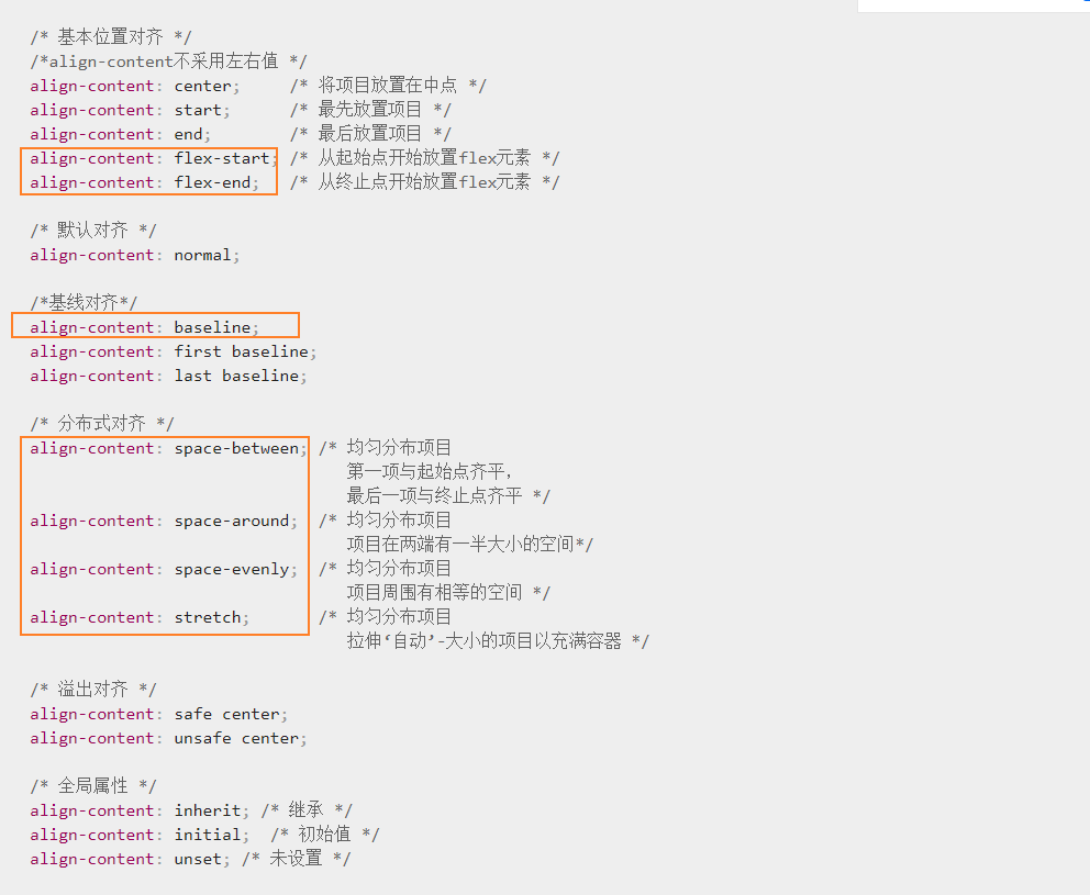 - 侧轴类:align-content、align-items、align-self