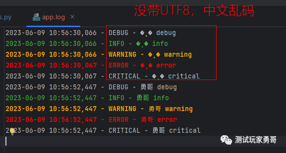 file_handler = logging.FileHandler('app.log', encoding='utf8') # 不带编码会出现中文乱码