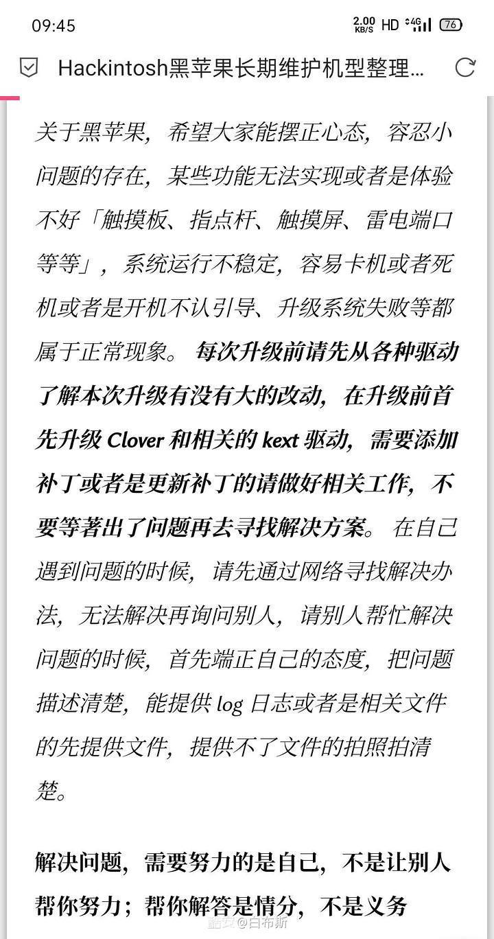 黑🍎装系统不难,难在一个匹配的EFI+正常使用的系统,所以机型一定要确认,配置可以有一些小差异。有一些硬件是对黑苹果是不友好的,比如三星PM981,会引起各种问题,建议新手避坑。