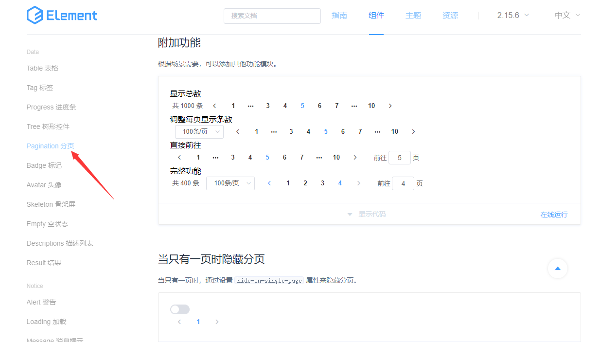 显示搞完了我们要找一个可以进行分页的组件了,而Element-ui却异常的简单,一键傻瓜式复制就可以解决