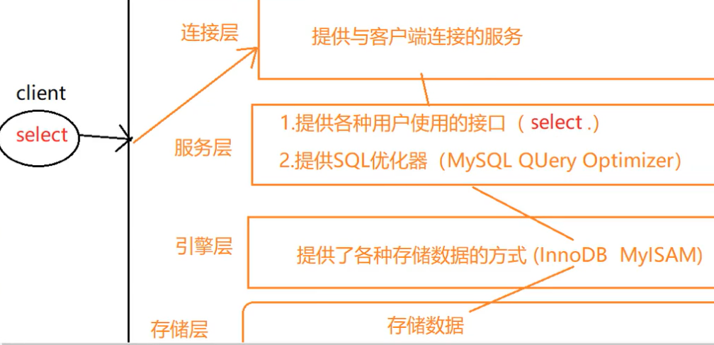 mysql逻辑分层:连接层 服务层 引擎层 存储层