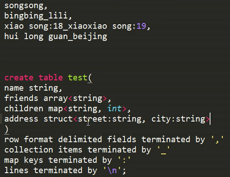 注意:同一个数据类型要用到多个分隔符时,需要先进行数据清洗,将分隔符变成相同的,因为下面只能指定1次。