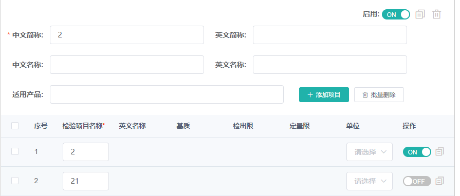 小表格中的每一个开关