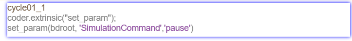 3、在Test Squence中使用coder.extrinsic 结合set_param暂停或停止仿真