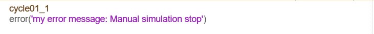 您可以在所需的步骤中使用错误函数。 这将停止模拟并输出自定义错误消息。