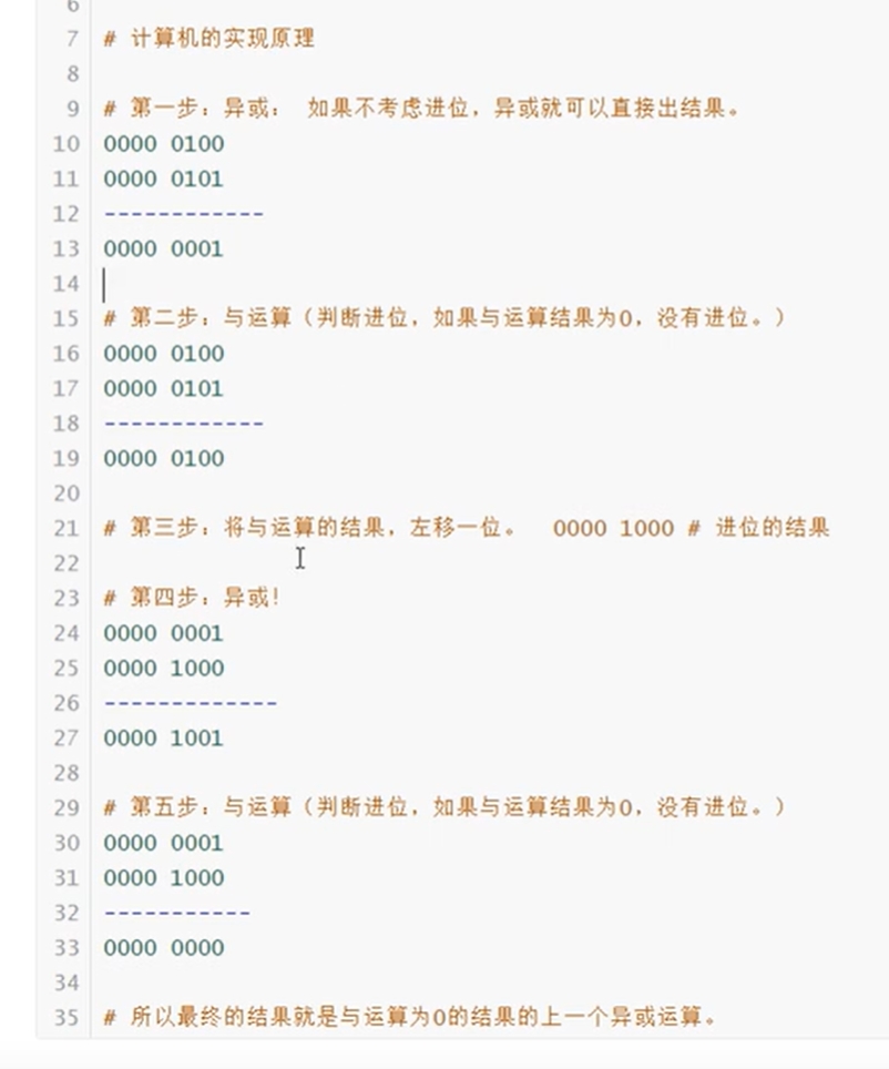 第一步:如果不考虑进位的情况,异或运算和正常的加法是一样的结果
