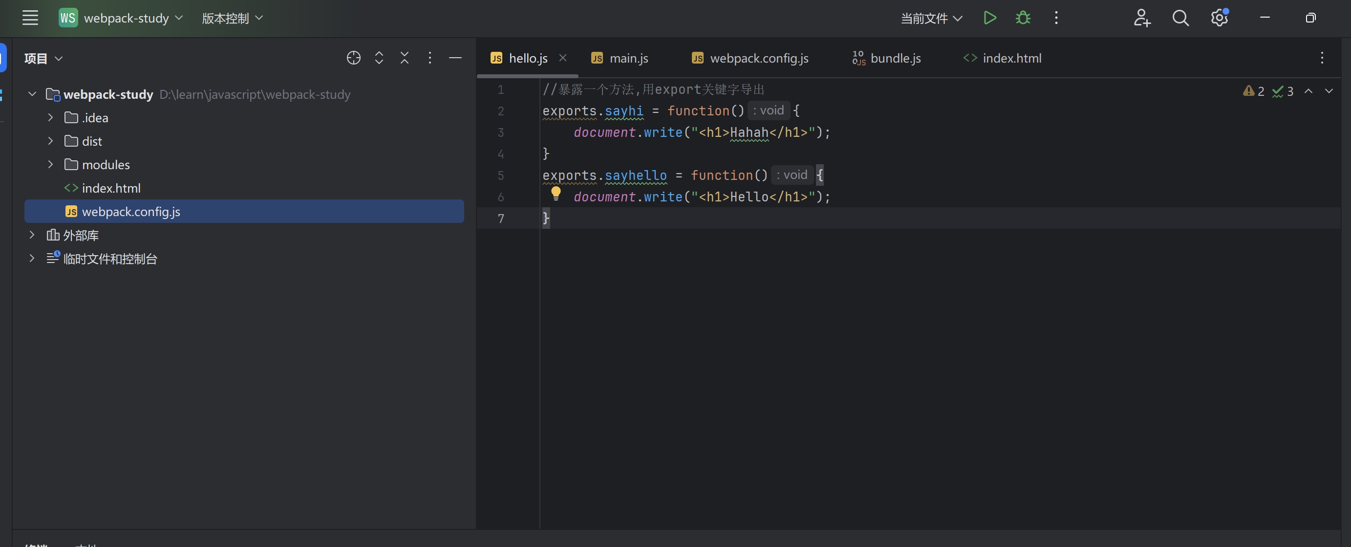 var hello = require('./hello.js');//require就偈java中的import一样,可以引入其他模块的函数,这就是模块化开发,不像以前要一个个script引入,