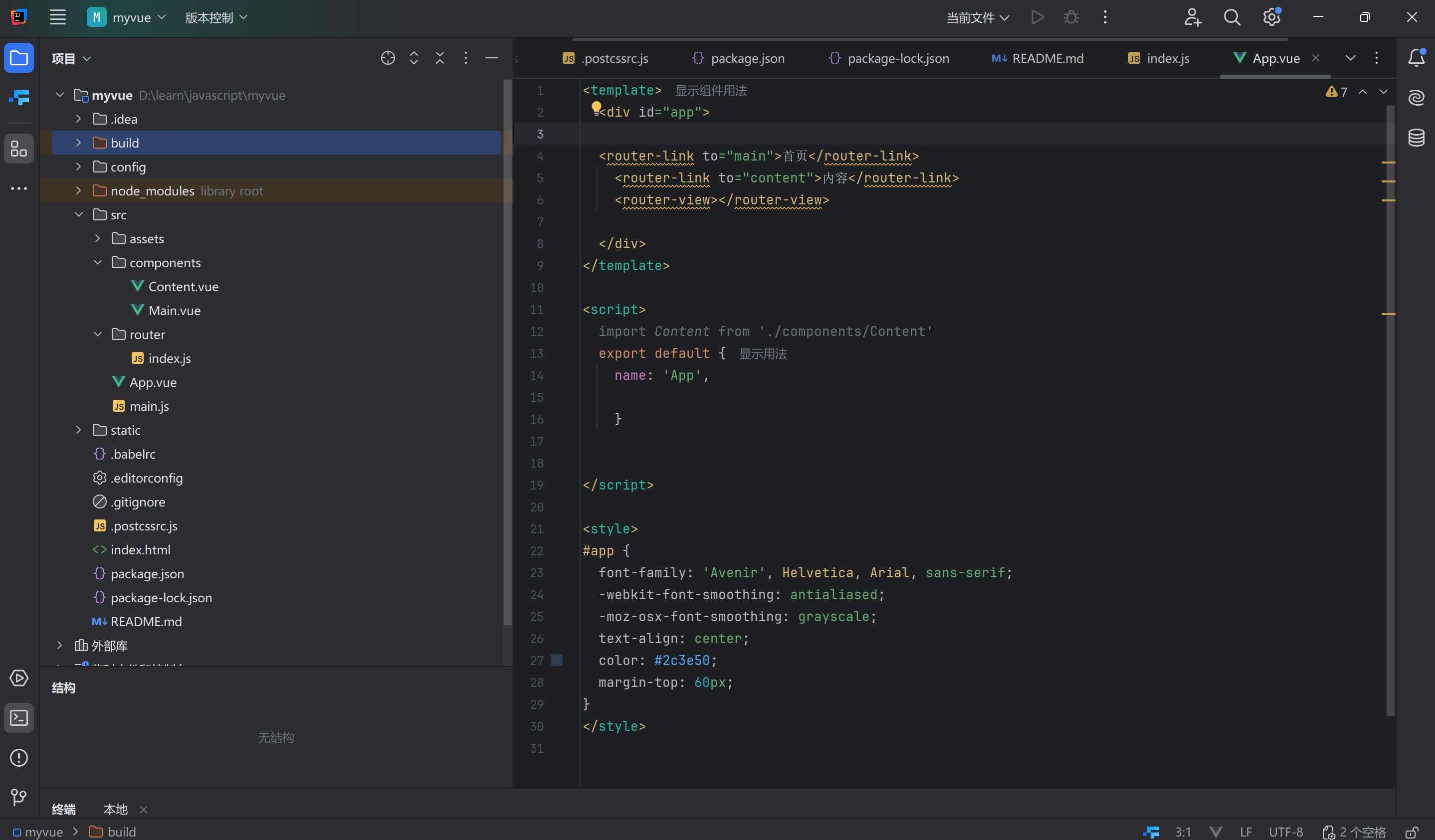 第一步:创建vue-cli工程,导入路由依赖,可以理解这个路由就是转发的作用