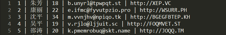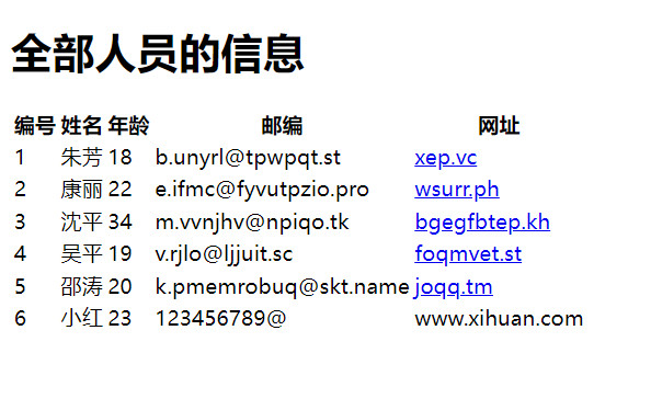 输入编号为6姓名小红年龄23邮编1223456789@qq.com网址www.xinhuan.com