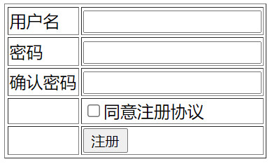 <?php //表单处理三部曲: //1 接收并校验 //2 持久性 //3 响应 // if($_SERVER['REQUEST_METHOD']==='POST'){ if(empty($_POST['username'])){ echo "会不会玩"; }else{ if(empty($_POST['password'])){ echo "请输入密码"; }else{ if(empty($_POST['confirm'])){ echo "请输入确认密码"; }else{ if(!($_POST['password']===$_POST['confirm'])){ echo "两次输入密码不一致"; } else{ if(!(isset($_POST['agree']) && $_POST['agree'] === 'on')){ echo "必须同意注册协议"; }else{ //全部交验ok $username=$_POST['username']; $password=$_POST['password']; //将数据保存到文档中 file_put_contents('users.txt', $username.'|'.$password); } } } } } } ?> <!DOCTYPE html> <html lang="en"> <head> <meta charset="UTF-8"> <title>表格处理</title> </head> <body> <form action="<?php echo $_SERVER['PHP_SELF']; ?>" method="post"> <table border="1"> <tr> <td><label for="username">用户名</label></td> <td><input type="text" name="username" id="username"></td> </tr> <tr> <td><label for="password">密码</label></td> <td><input type="password" name="password" id="password"></td> </tr> <tr> <td><label for="confirm">确认密码</label></td> <td><input type="password" name="confirm" id="confirm"></td> </tr> <tr> <td></td> <td><label><input type="checkbox" name="agree">同意注册协议</label></td> </tr> <tr> <td></td> <td><button>注册</button></td> </tr> </table> </form> </body> </html>