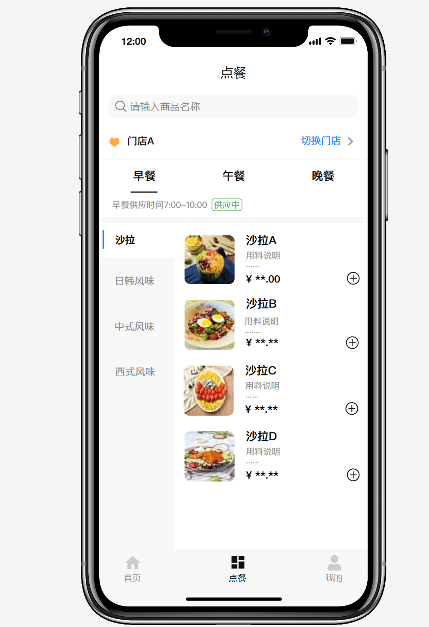 沙拉类、日韩风味、中式风味、西式风味选择按钮