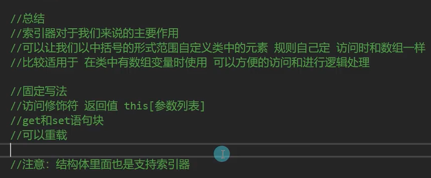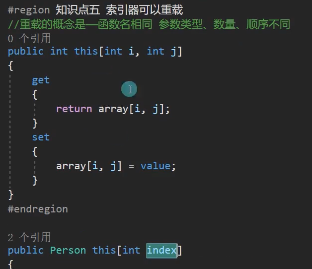 //索引器往往是在类外部去访问类里部的某个数组,为了方便访问就会用索引器