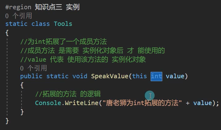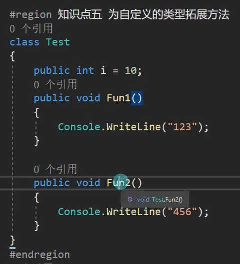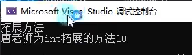 注意:如果拓展方法的方法名和原类中的方法名称相同,比如下面Fun3改为Fun2则在调用时会调用自己的Fun2即输出456;