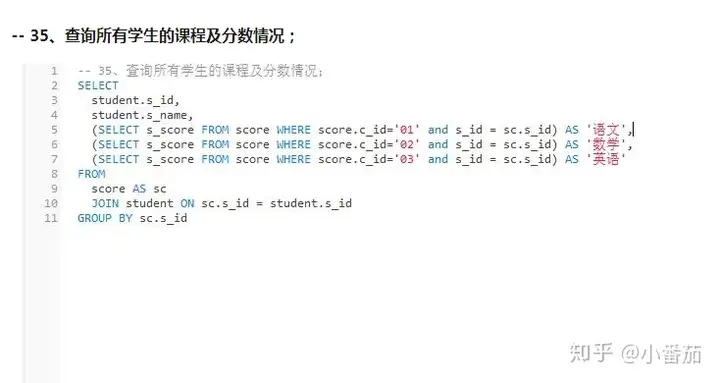 35、查询所有学生的课程及分数情况(重点)