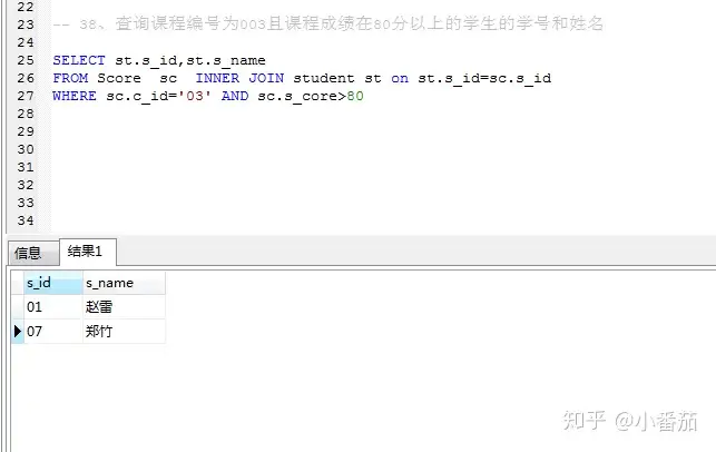 38、查询课程编号为03且课程成绩在80分以上的学生的学号和姓名(不重要)