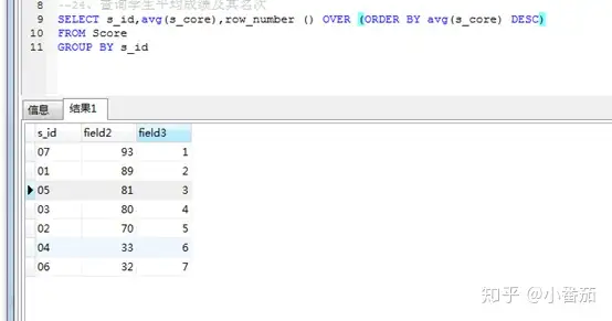 24、查询学生平均成绩及其名次(同19题,重点)