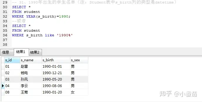 31、查询1990年出生的学生名单(重点year)