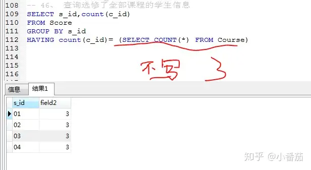 45、 查询选修了全部课程的学生信息(重点划红线地方)