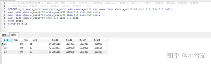 备注:1.因为要选出需要的字段 用case when 当c_id='01' then 可以得到对应的 s_core