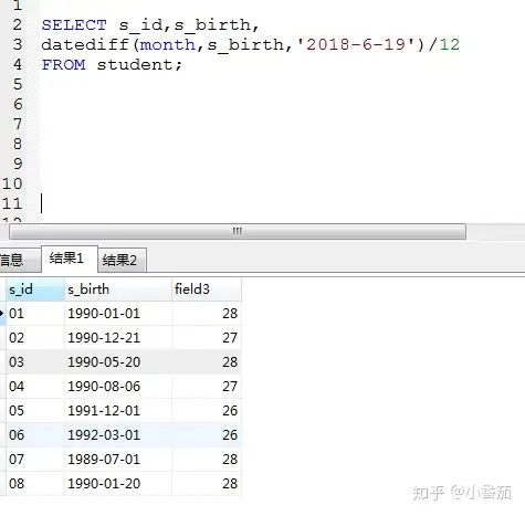 备注:年份转换成月份,比如结果是1.9,ditediff 最后取1年
