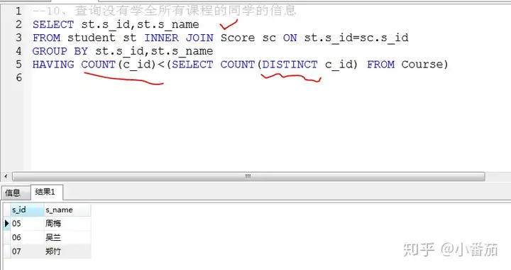 10.查询没有学全所有课的学生的学号、姓名(重点)
