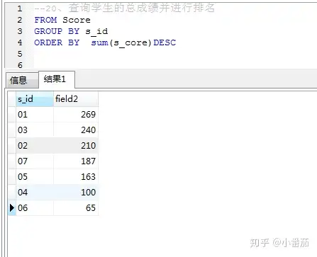 20、查询学生的总成绩并进行排名(不重点)