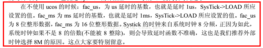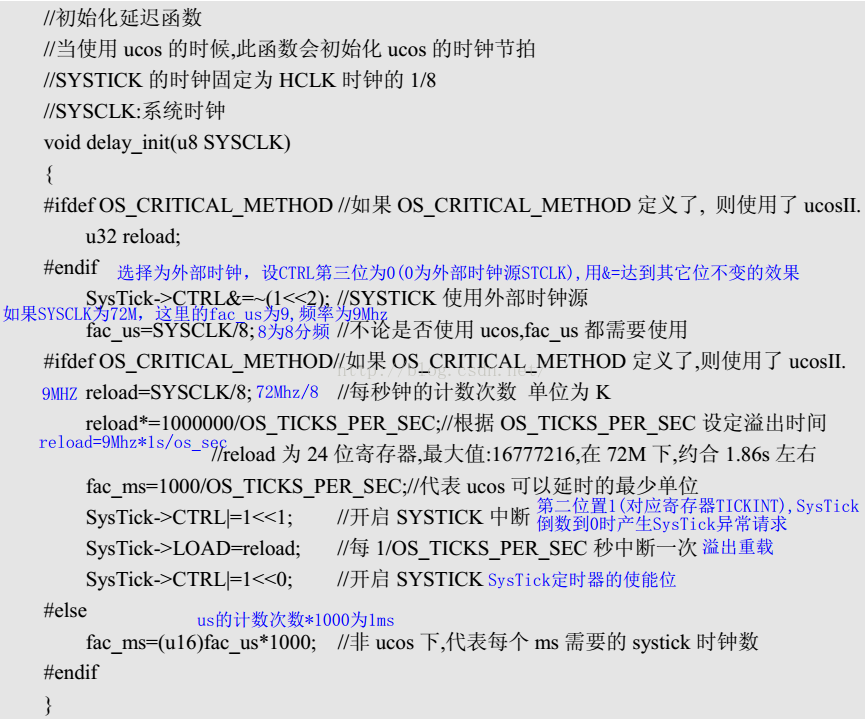 后面delay_ms()和delay_us()两个函数就根据上面的fac_us和fac_ms进行乘法运算