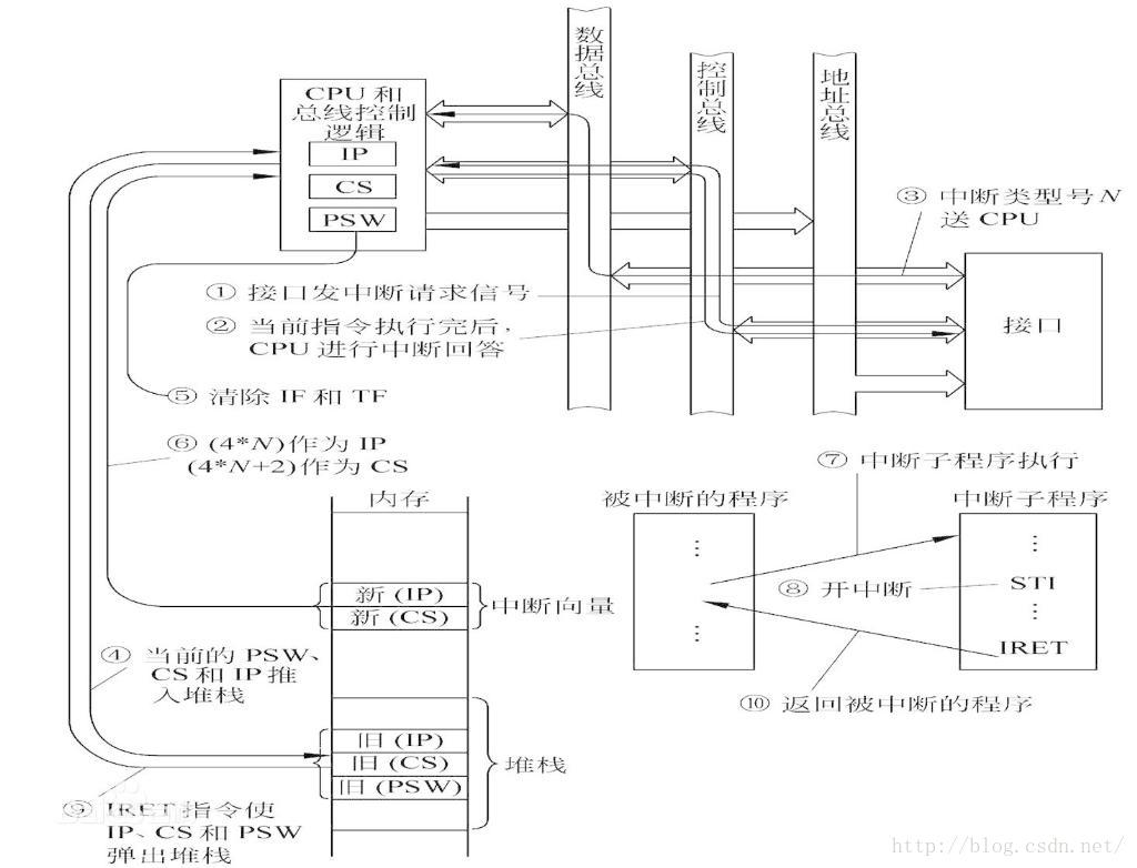 简述:保存断点入栈,响应经中断控制器8259优先级判断后的中断请求,恢复断点。