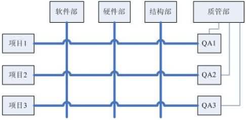 在矩阵型组织结构中也有一个问题,由于QA和项目组分别向不同的领导负责,因此相对而言,QA较难融入项目组深入发现问题,而且可能常常遇到QA与项目经