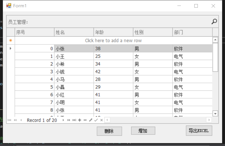 4、界面添加按钮,增加。编写按钮逻辑,点击后在缓存中添加员工对象