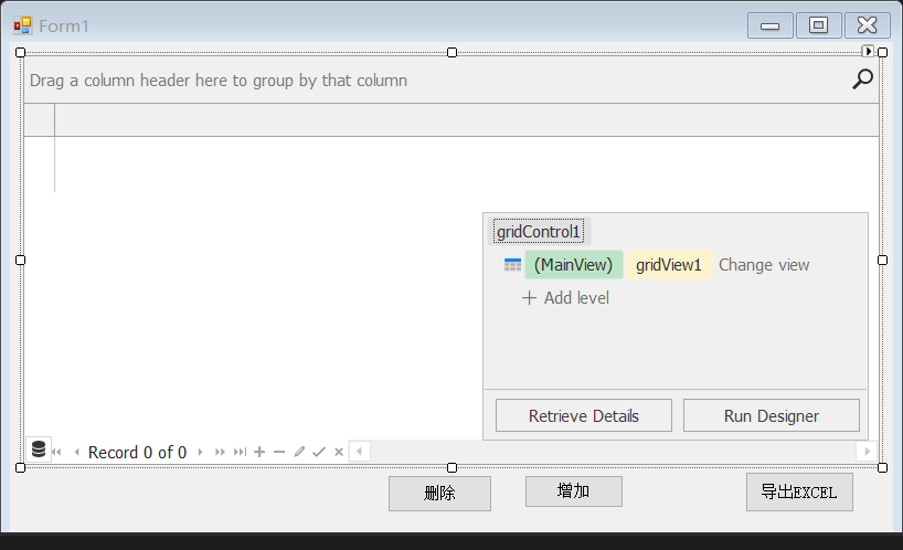 2、在窗体中创建DEV的GridControl